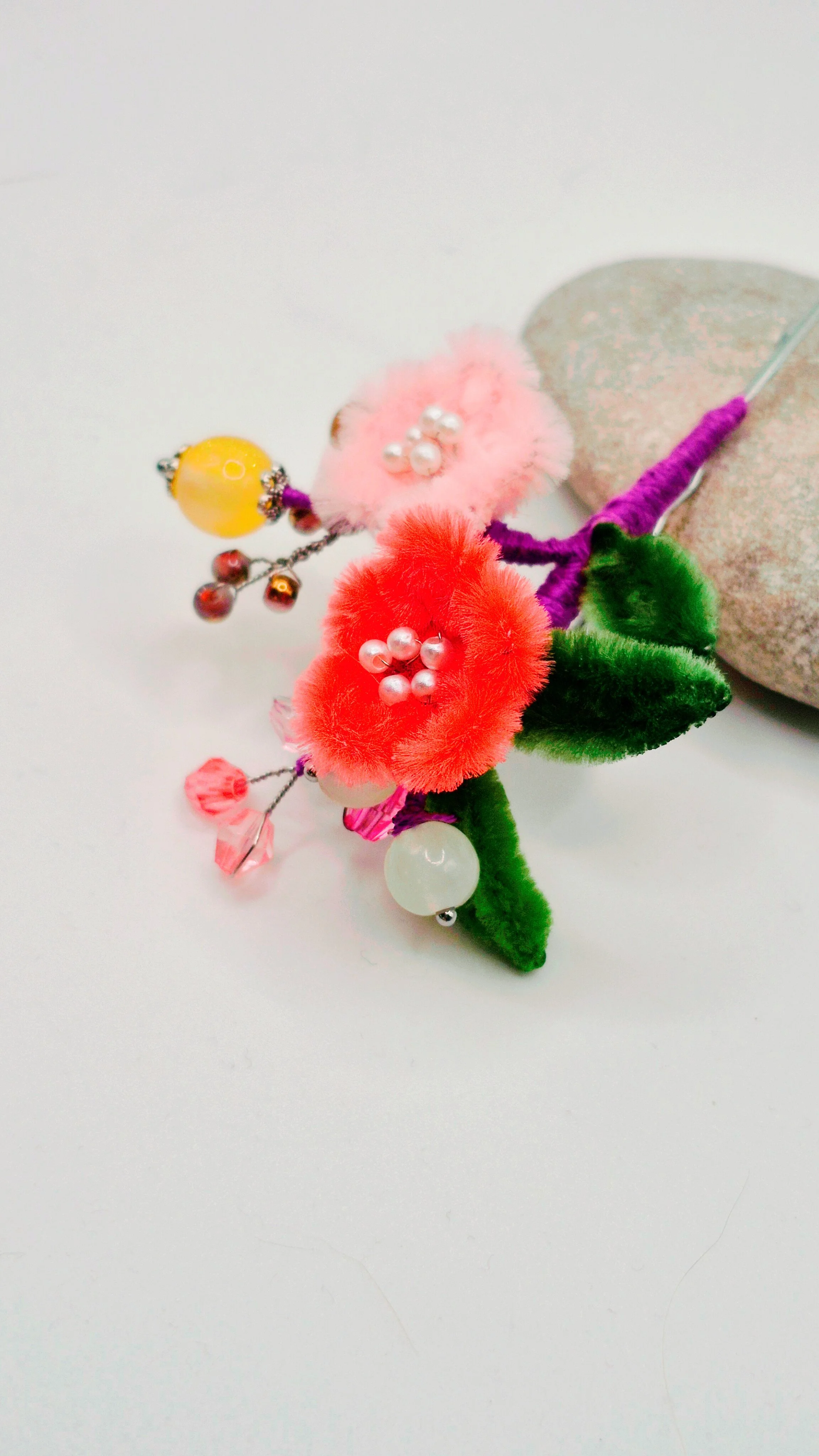 Playful, lively, and voluptuous, these rong hua silk flower cherry blossom Bobby pins click onto your hair without any hassle.
